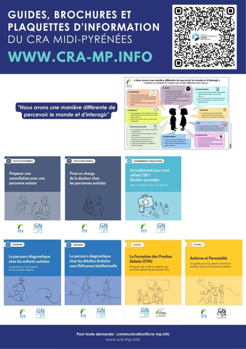 Dans le but d'améliorer les conditions dans lesquelles les personnes atteintes de troubles autistiques peuvent bénéficier de soins somatiques, le CRA Midi-Pyrénées et le Centre de Guidance (ARSEAA) se sont associés pour diffuser une plaquette d'information associée à une carte individuelle.